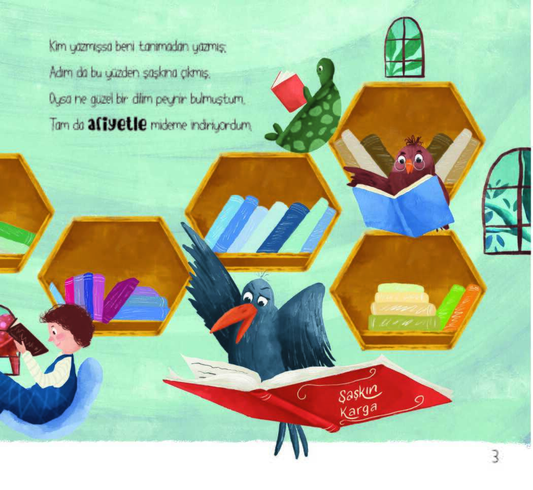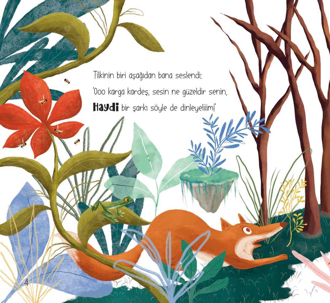 Kütüphanedeki masal kitabı aniden kıpırdandı. Bir karga başını dışarı çıkarıp homurdandı: “Ay, of, uf, puf, nasıl kitap bu, Hiç ‘Şaşkın Karga’ diye masal olur mu?” … Her şey karganın bunları söyleyip kitaptan kaçmasıyla başladı. Karga şaşkın olarak anılmak yerine hayattaki gerçek değerini bilmek istiyordu. Gerçek dünya nasıl bir yerdi? Burada dostluklar nasıl gelişirdi? Merakla uçtu uçtu… Veee kendini acayip bir maceranın içinde buldu. Bazen güldü, bazen gu¨ldürdü ama çok şey öğrendi. Sonunda hiç istemese de yine karşılaştı tilkiyle… Peki bu kez ne mi oldu aralarında? “Masaldan Kaçan Karga” kitabının gizemli sayfaları işte bu sorunun cevabı için seni bekliyor…
